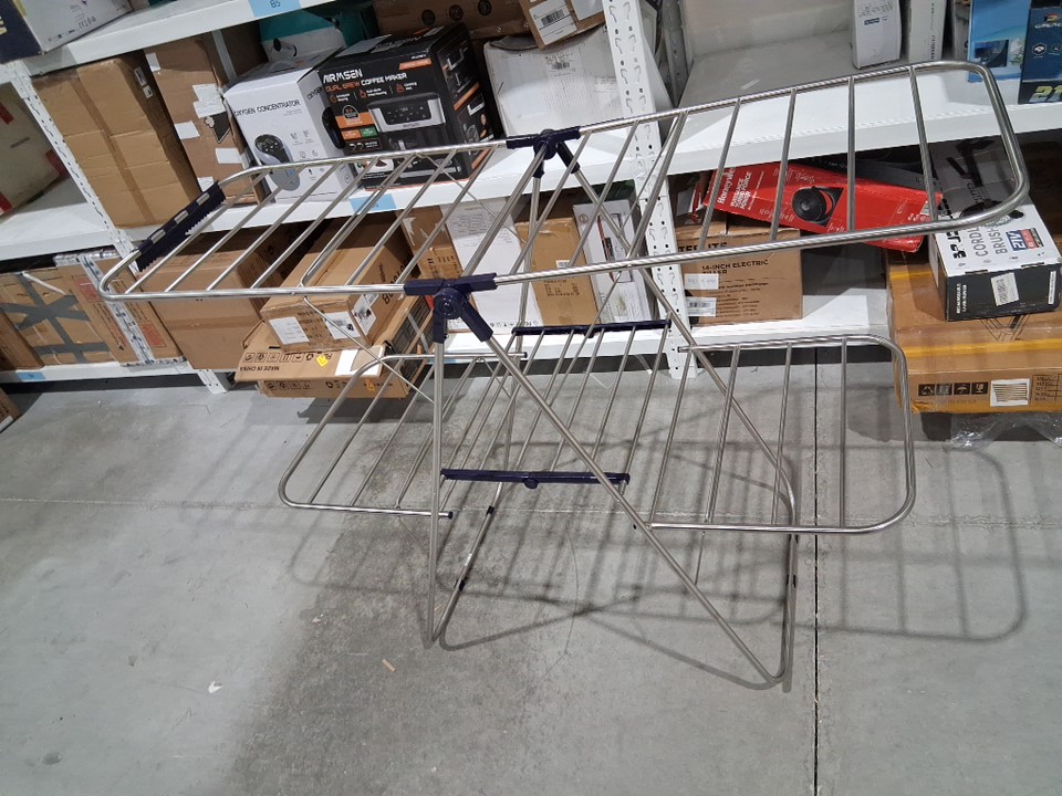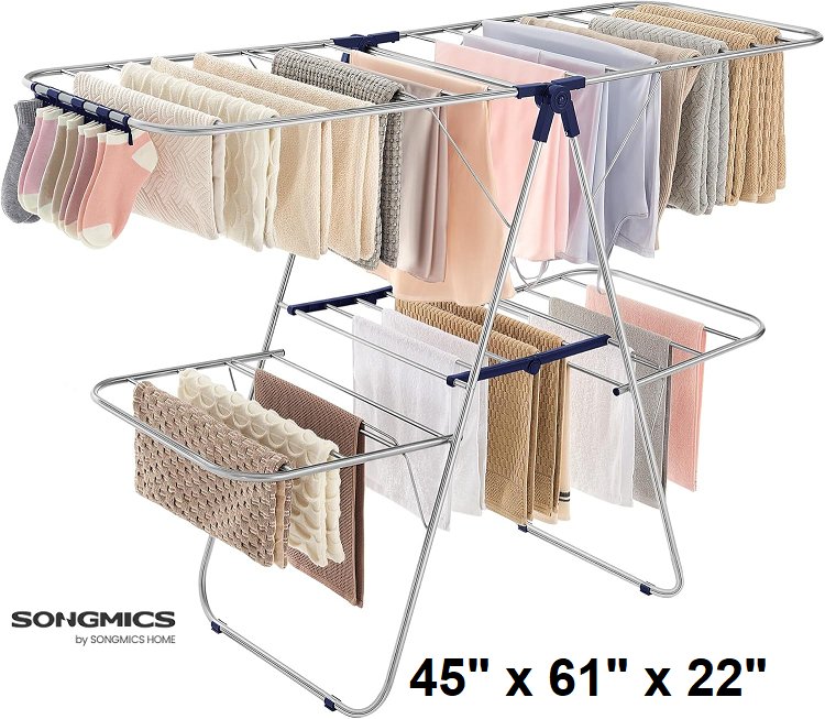 SONGMICS Clothes Drying Rack, Foldable 2-Level Laundry Drying Rack, Free-Standing Laundry Airer, with Height-Adjustable Wings - 45" x 61" x 22" - silver blue