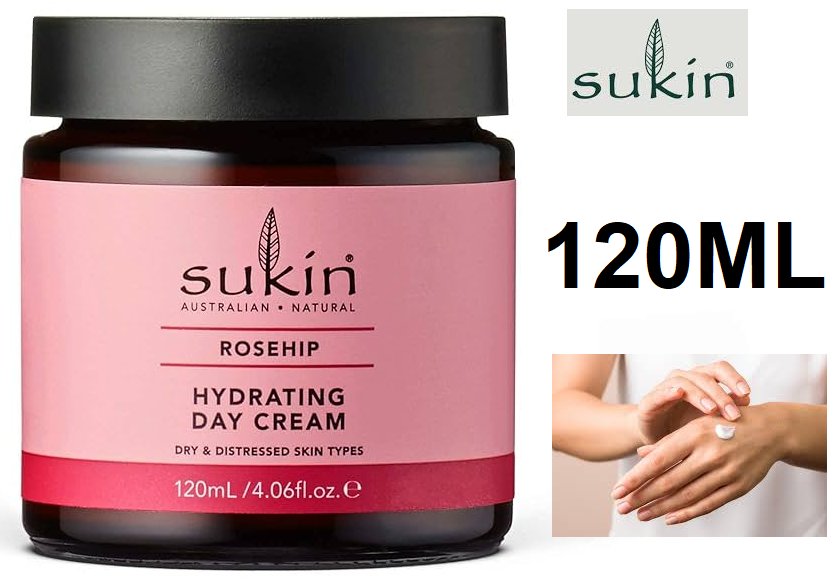 SUKIN HYDRATING DAY CREAM FOR DY DISTRESSED SKIN TYPES - 120ML - ROSE HIP
