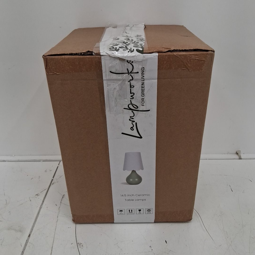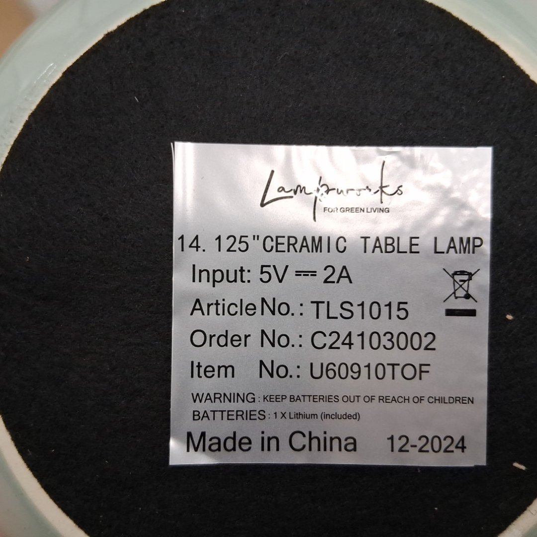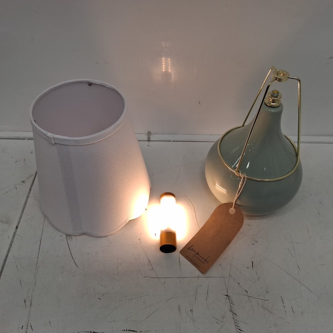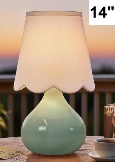LAMPWORKS Ceramic Table touch Lamp with researchable and removable light - 14" - greenish blue/white (MODEL: 92405-BL)