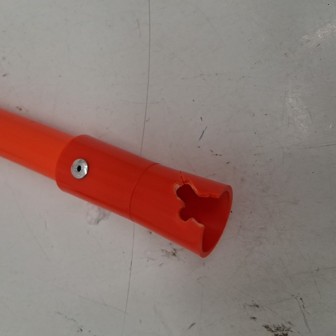The plastic piece on the bottom of one of the poles is chipped. (see photos)