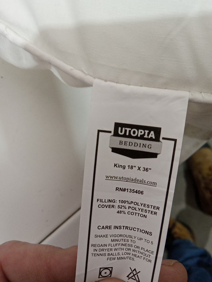 2PK Utopia Bedding Bed Pillow for Back, Stomach or Side Sleepers - king -18" x 36" - white