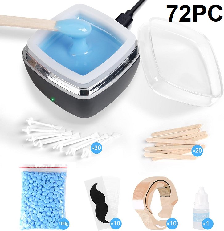 72pc foctxi portable nose wax kit with wax, applicators, nose hair sticks ear protectors & mustache protectors - black/blue
