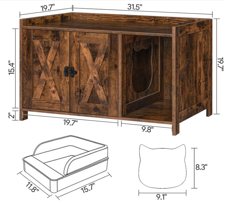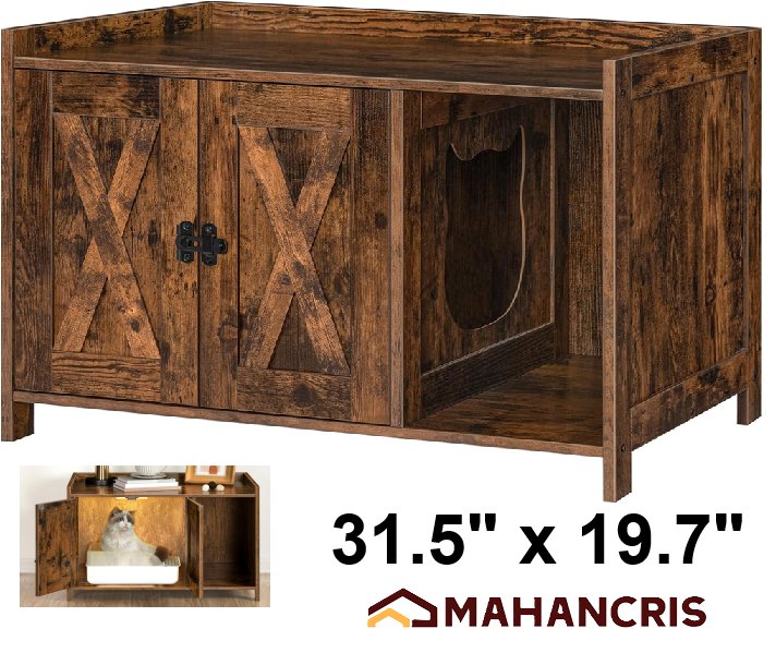MAHANCRIS Cat Litter Box Enclosure - 31.5" x 19.7" - rustic wood ( model- CWHR2501Z)