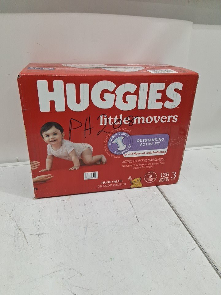 136PK HUGGIES LITTLE MOVERS BABY DIAPERS - SIZE 3 - LION KING