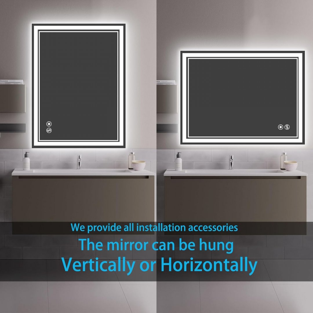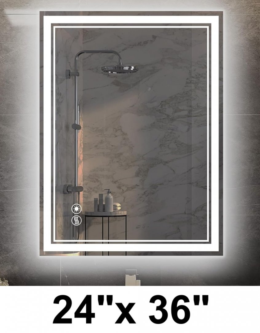 wall mounted bathroom vanity mirror with LED light and anti-fog - 24" x 26"