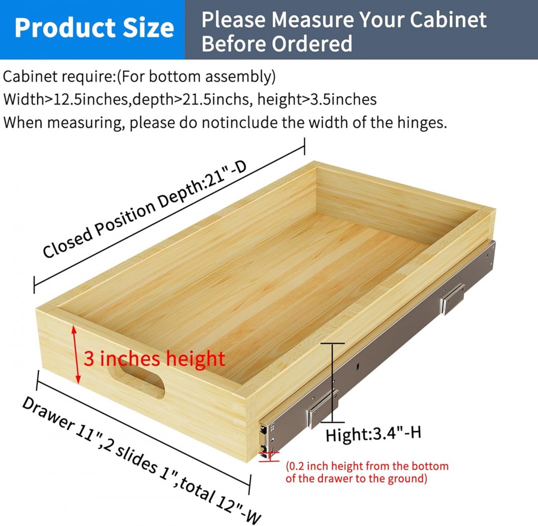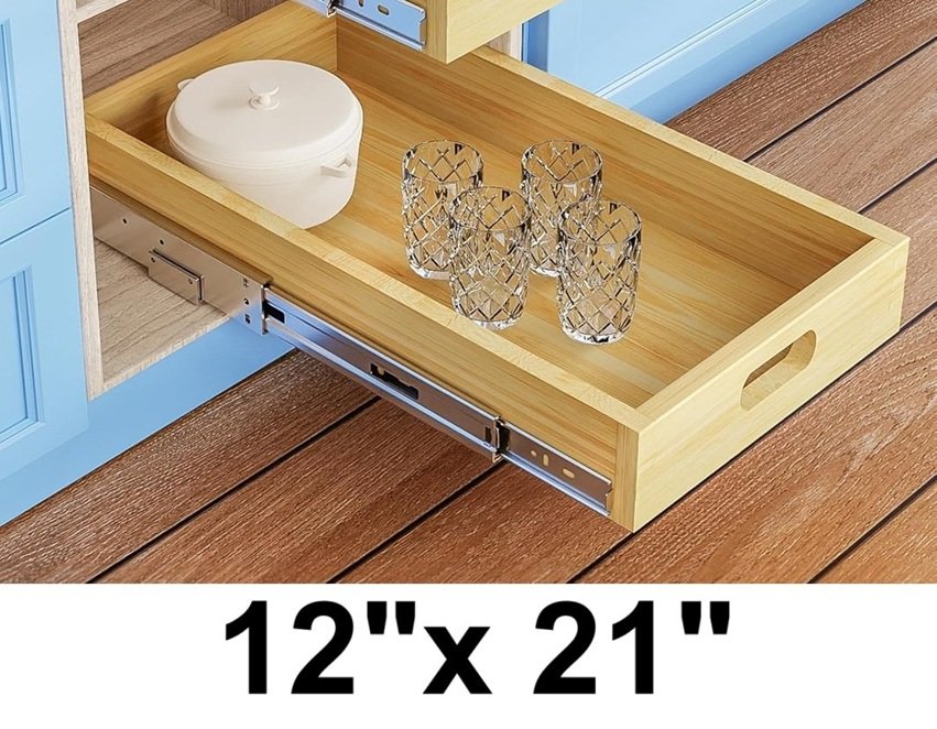 petpvilit pull out cabinet storage organizer drawer assembly - 12" x 21" - natural wood - (model: POD0011)