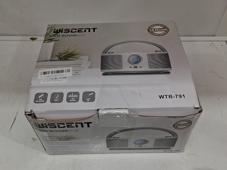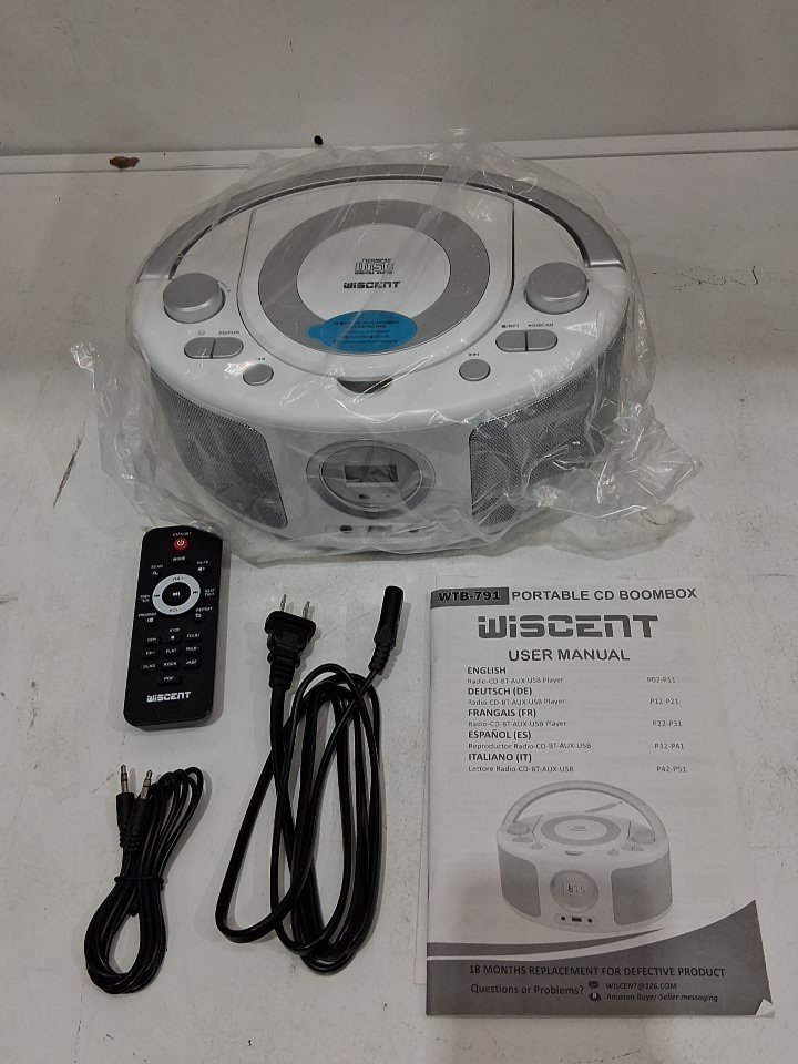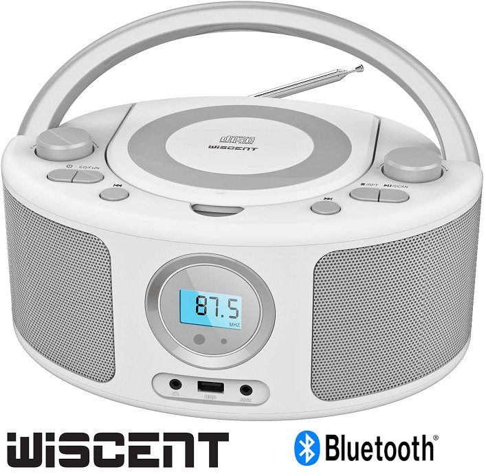 wiscent Portable CD Player Boombox with Bluetooth, FM Radio, USB Input and 3.5mm - white (model: WTB-791)
