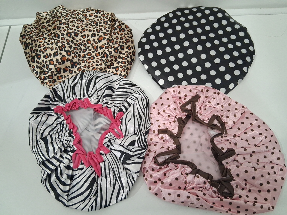 4PK Women Shower Caps Reusable Elastic and Waterproof - ASSORTED COLORS