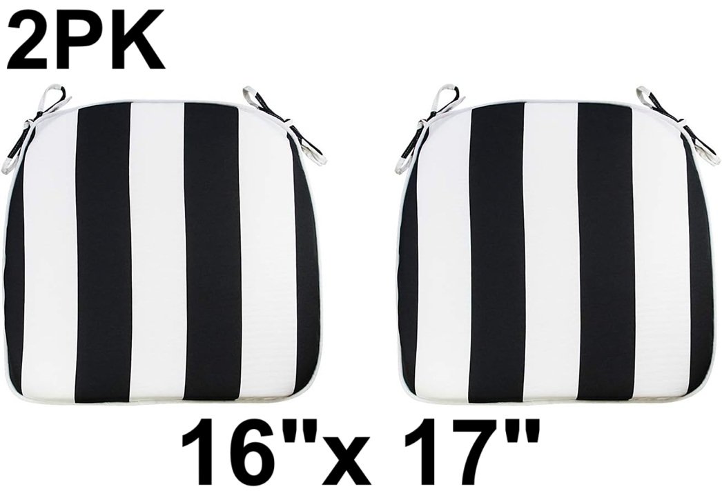 2pk fbts prime outdoor seat cushions with ties - 16" x 17" - black/white stripe