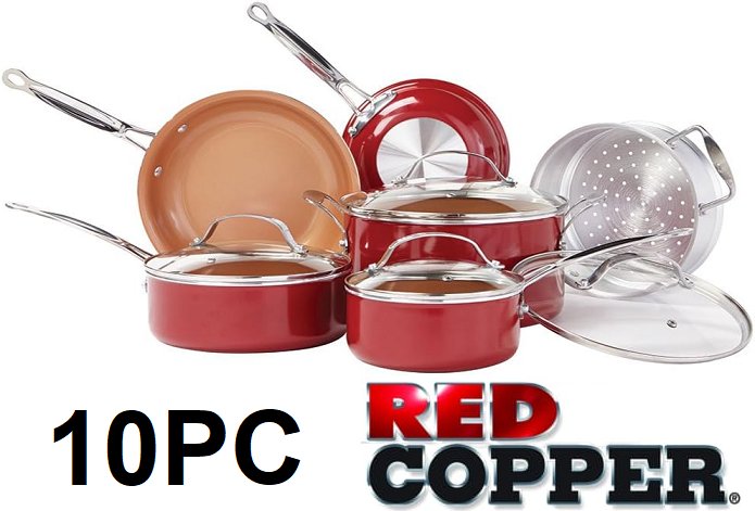 10PC BULBHEAD RED COPPER Copper-Infused Ceramic Non-Stick Cookware Set - RED