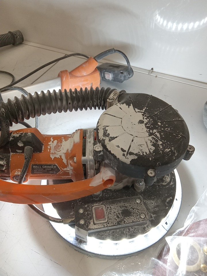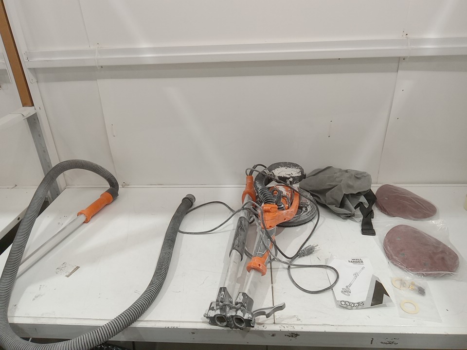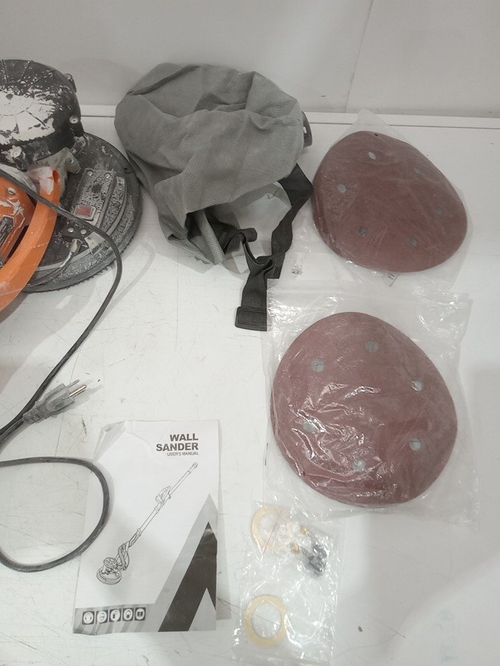 There are heavy dust/dirt residue around the product, there are scratch marks on the extension pole and there are white color dirt residue on the sandpaper from previous use. Tested for power and motor function only. (Please see photos)