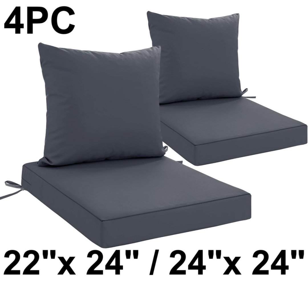 4pc ottowood outdoor cushions for patio furniture, 2 backs and 2 seats - 22" x 24"(back), 24" x 24"(seat) - dark grey - (model: owa-2424-dark grey-2p)