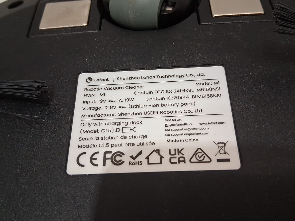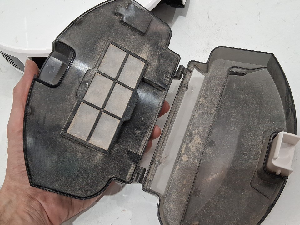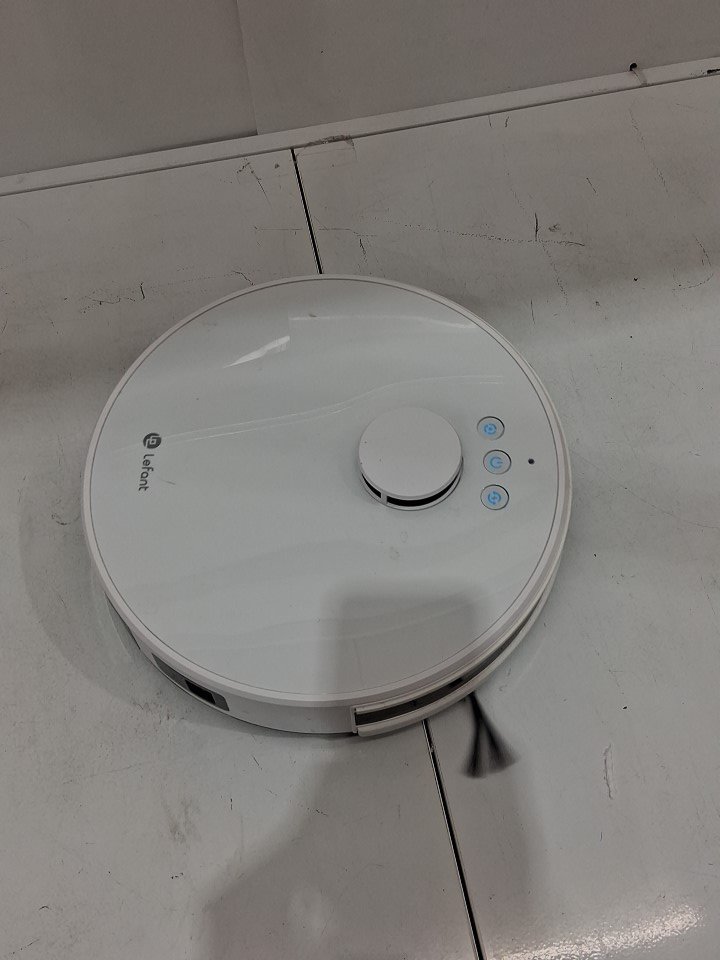 **Tested for power, movement, basic functions (spot clean/return home) using the buttons on the robot.** Item has some dust/debris build-up in the dustbin/filter area and main roller, light wear on the side brushes, a few minor scuffs/markings along the exterior from previous gentle use, see photos.