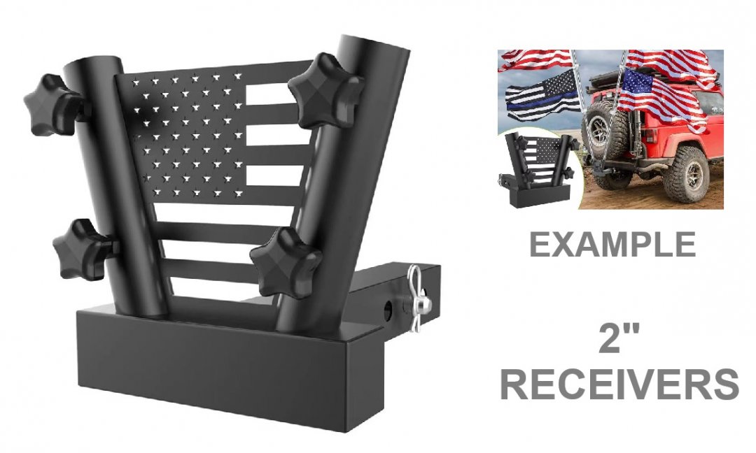 Hitch-Mount Dual FlagPole Holder - 2" Inch Receivers - BLACK/USA