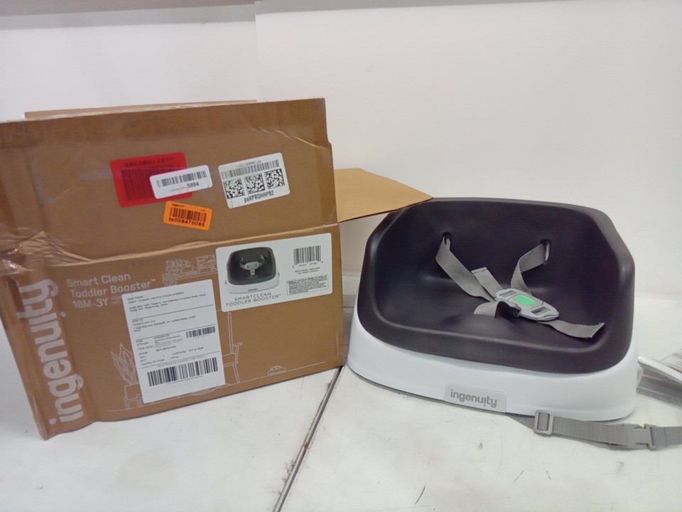 INGENUITY SMARTCLEAN TODDLER BOOSTER SEAT - 33LBS CAPACITY - WHITE/SLATE GREY (MODEL: 11786/11787))