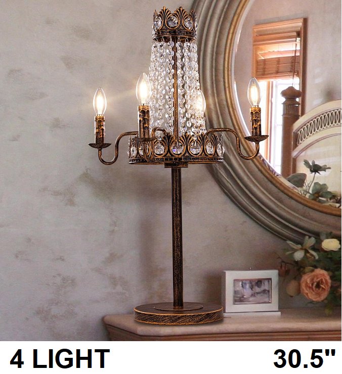 tochic crystal table lamp - 4 light | 30.5" - rustic brown - (model: ds-ctl012)