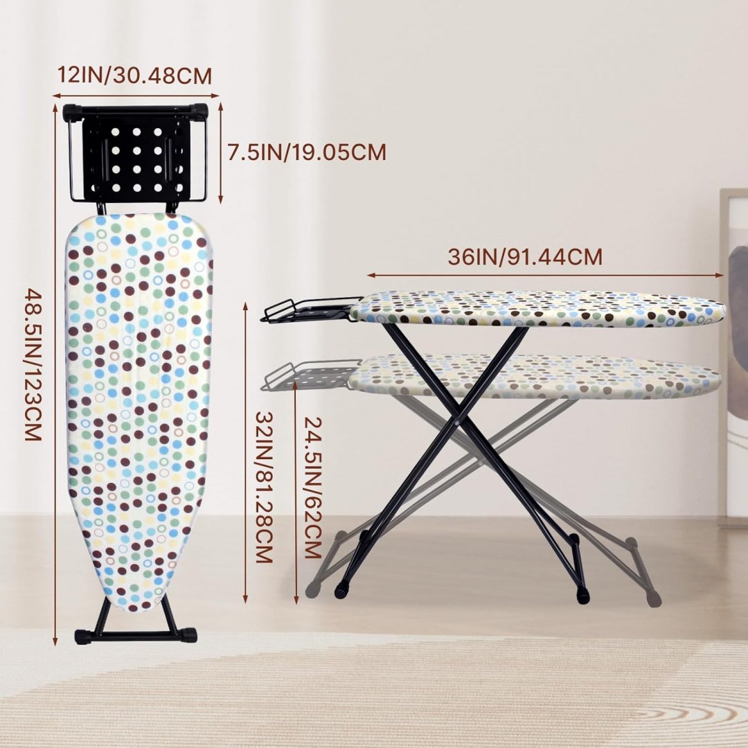 LIWSHWZ Ironing Board with adjustable height - 12" x 36" - multicolour polka dot (model: ‎Y001)