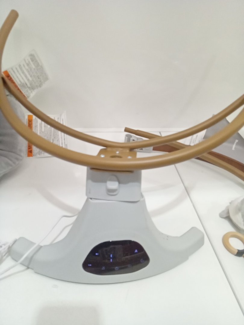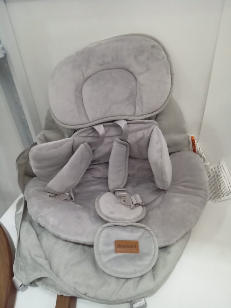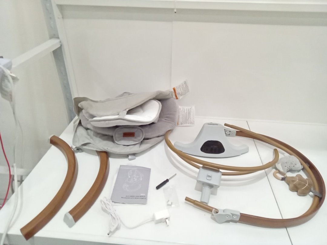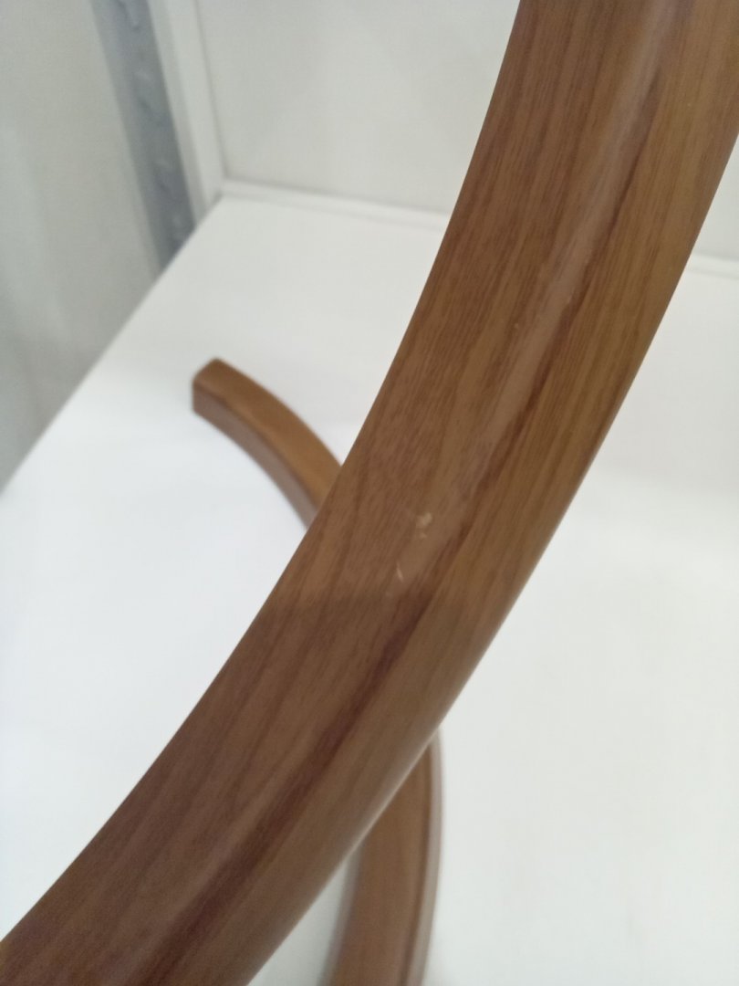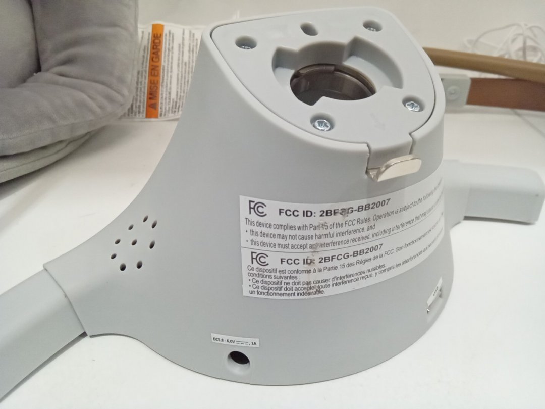Strong scent on the fabric of the seat, as well as light scuffs and minor stains on the base from prior use.
