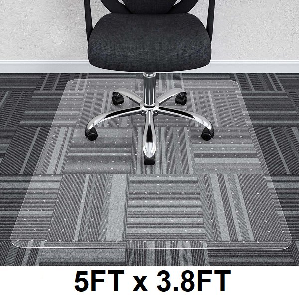 Office chair easy roll floor mat with spikes for carpeted floors - 5ftx3.8ft - Clear