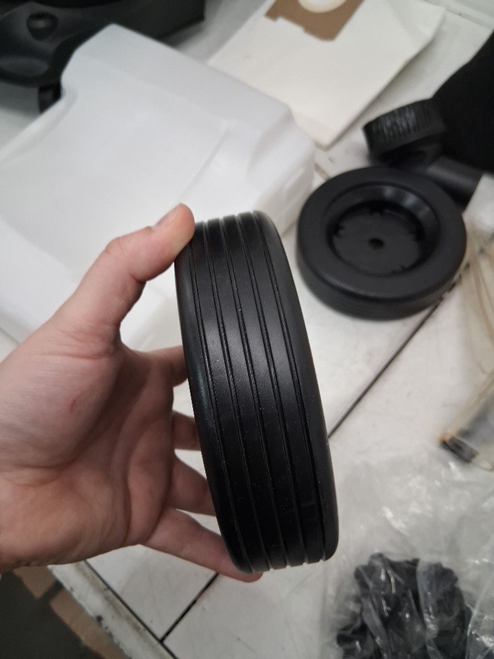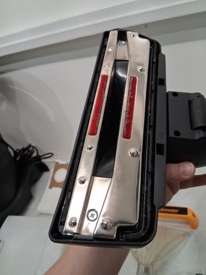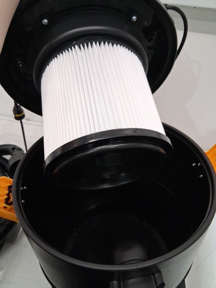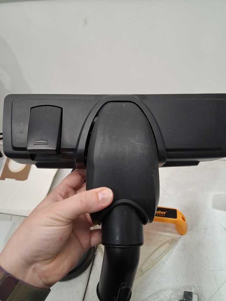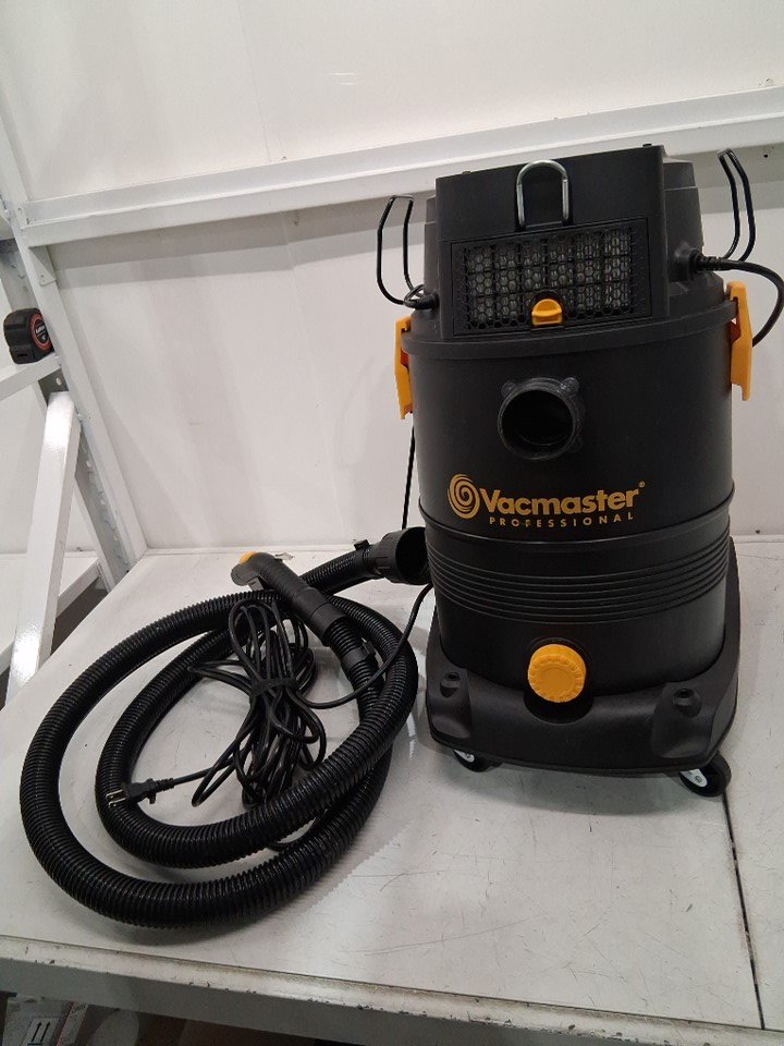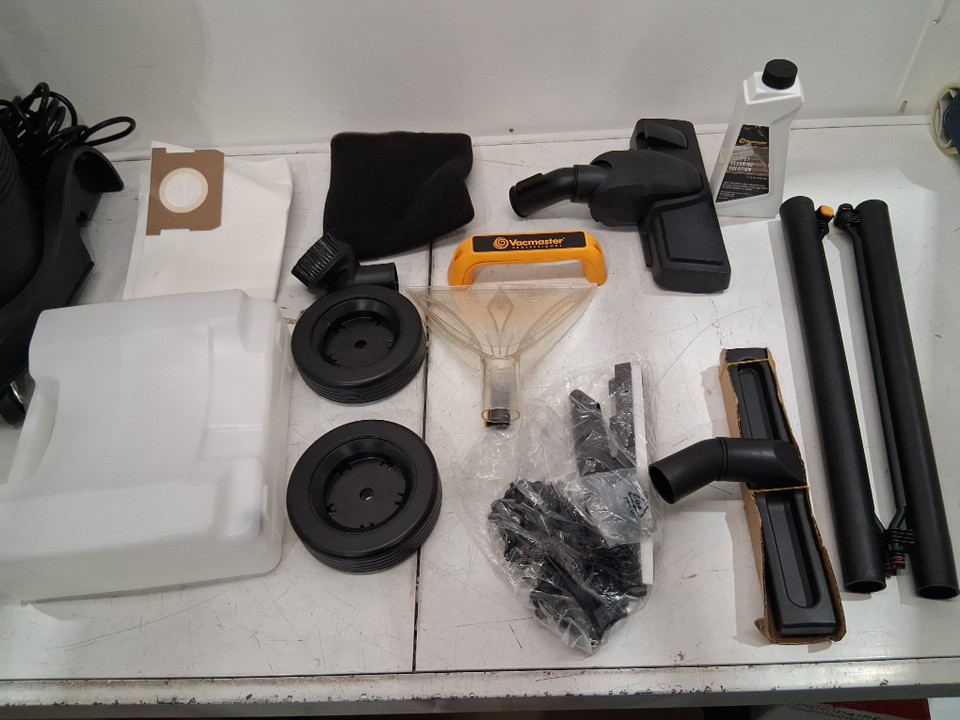 Item shows previous signs of use such as dirt/dust inside and outside of unit, as well as on head attachment and wheels. Item has scratch on front of canister on logo. Item tested for power.