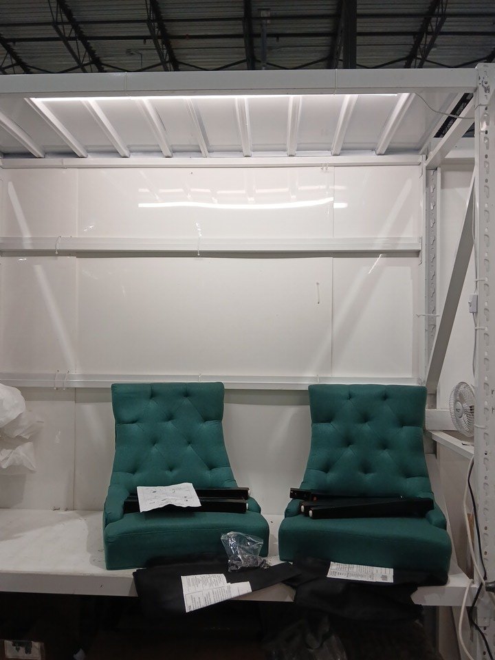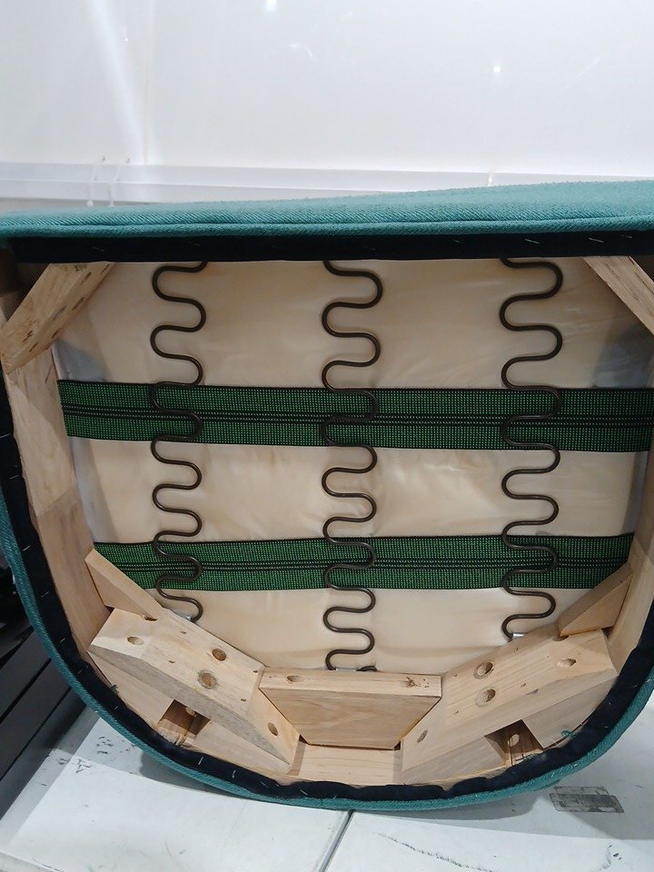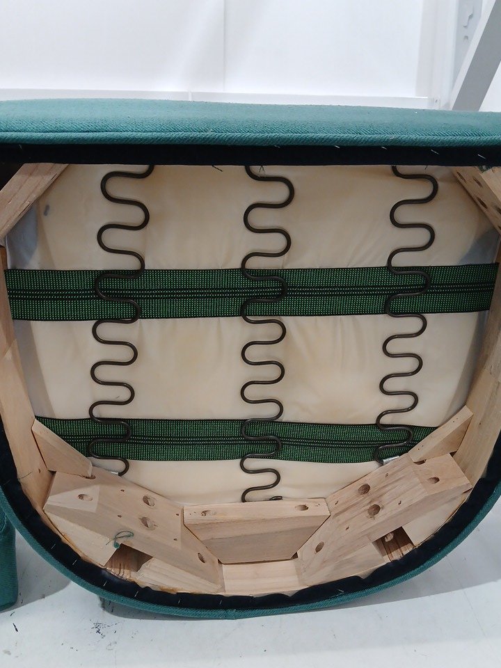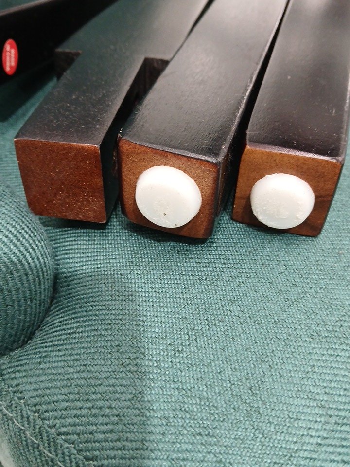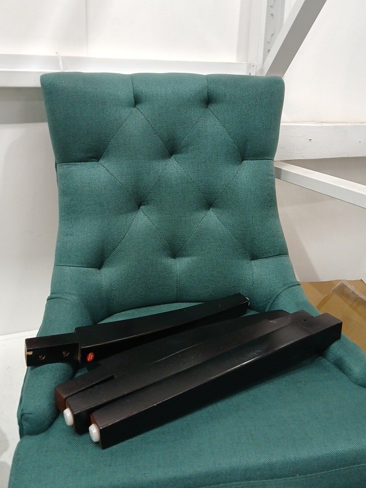 Has some scuffing on the chair legs. Small stain in the seat of one of the chairs.