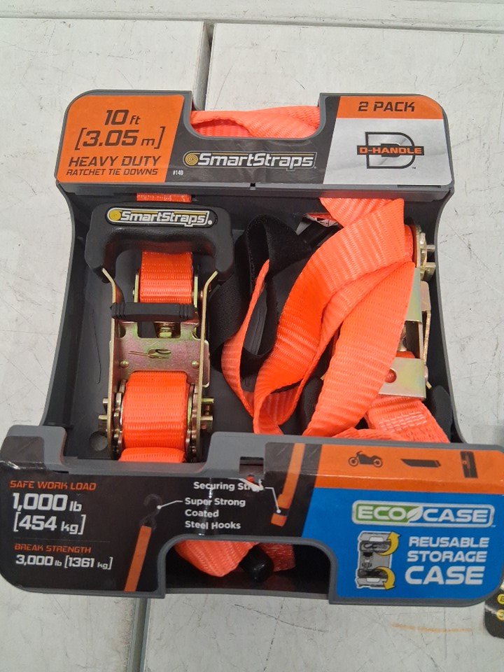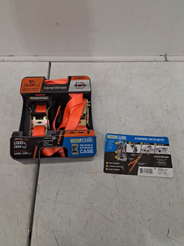 2PK SMARTSTRAPS RETRACTABLE RATCHET TIE DOWN STRAPS - 10FT - 1000LB SAFE WORK LOAD - 3000LB BREAK STRENGTH - ORANGE (MODEL: 173W)