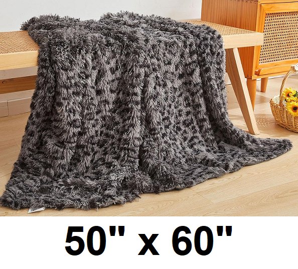 XEGE LUXUTY FAUX FUR THROW BLANKET- 50"X60"- Cheetah print/light grey
