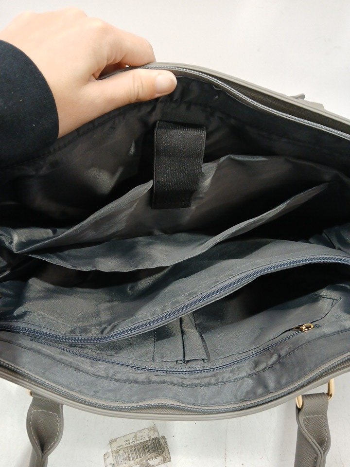 Missing clutch and over the shoulder strap. Has a line on the front of the bag.