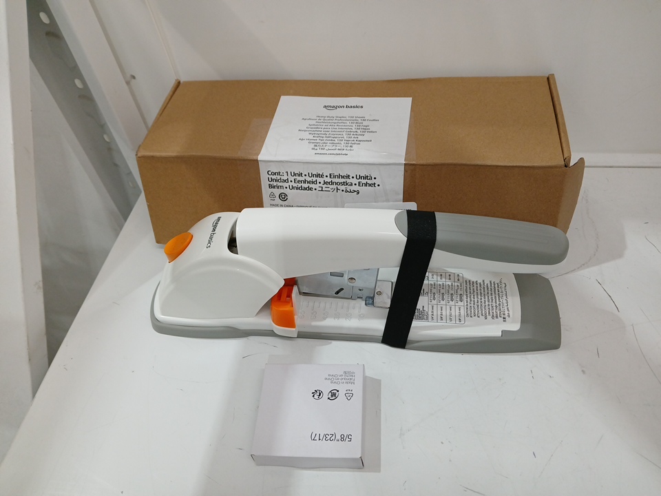 Amazon Basics Heavy Duty Stapler - 130 Sheets/ 5/8" - White/Grey
