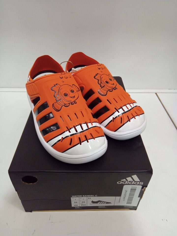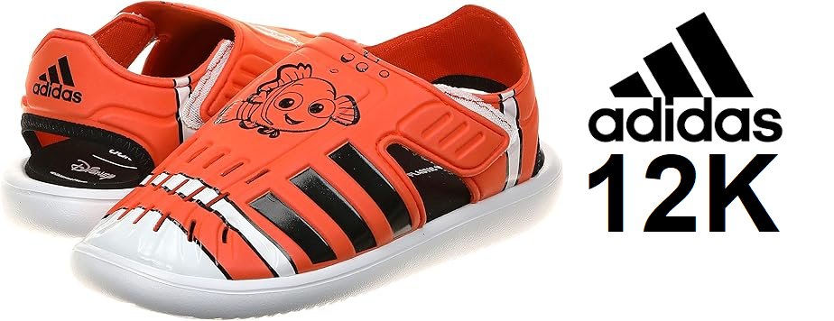 boy's adidas nemo water sandals - size: 12k - orange/black/white - (style: HP7753)