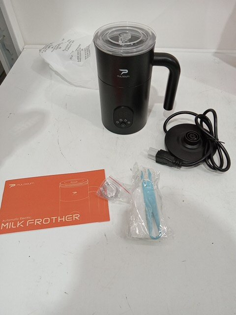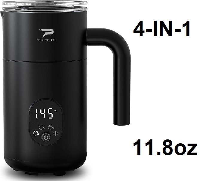 puldoum 4-in-1 corded electric automatic milk frother - for coffee/latte - 11.8oz - black (model: pul-002)