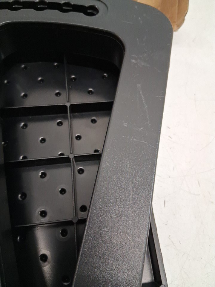 The item has light scratches, could be from shipping and poor packaging. Also require nut/bolts to assemble.