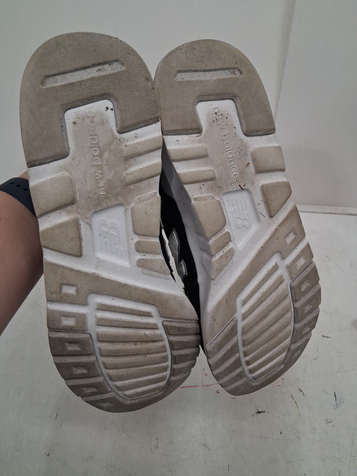 item shows light signs of use like wear and dirt on the bottom of the shoes