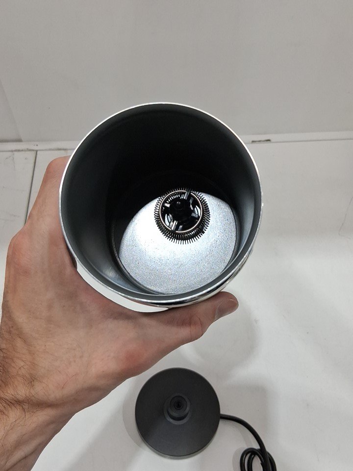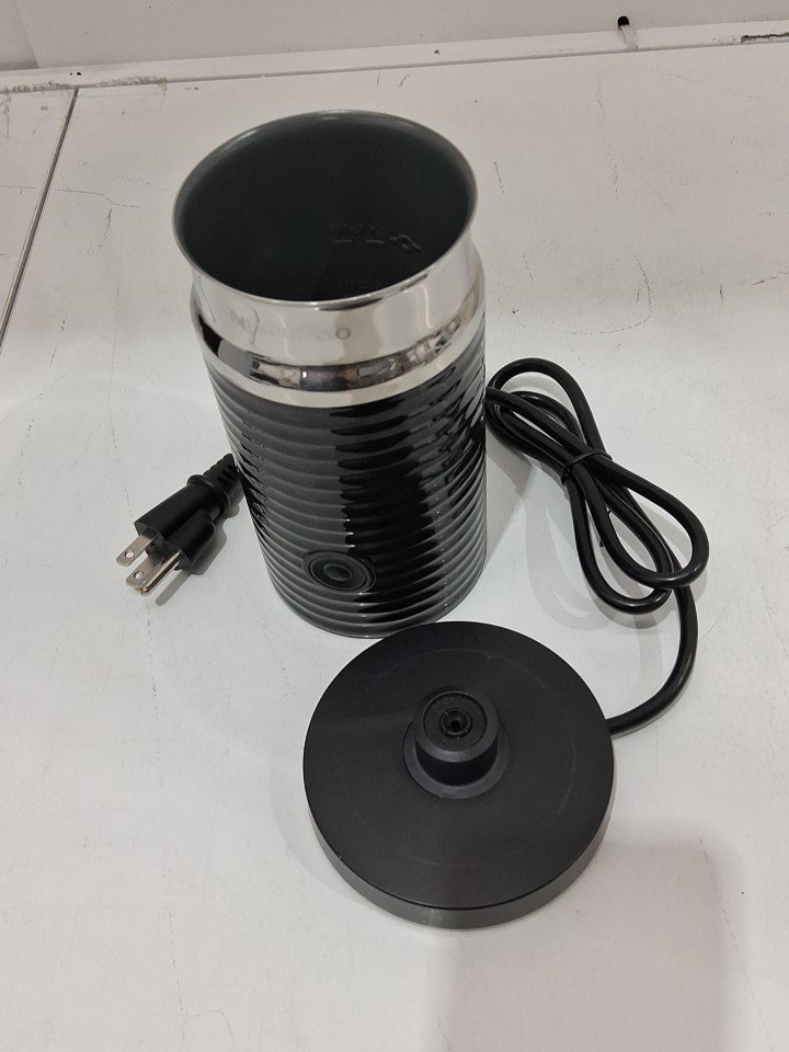 Item has minor scuffs/scratches on the frother's interior and on the heating unit from previous gentle use, see photos. Please also note this item is missing the lid which can be replaced on amazon: https://www.amazon.ca/Frother-Nespresso-Aeroccino-Clear-Replacement/dp/B0DWZR9FX1/ref=asc_df_B0DWZR9FX1?tag=bingshopdesk-20&linkCode=df0&hvadid=80127109035650&hvnetw=o&hvqmt=e&hvbmt=be&hvdev=c&hvlocint=&hvlocphy=5259&hvtargid=pla-4583726572959962&psc=1&msclkid=fad1d6da5edc10376fbcbe076e5ea999