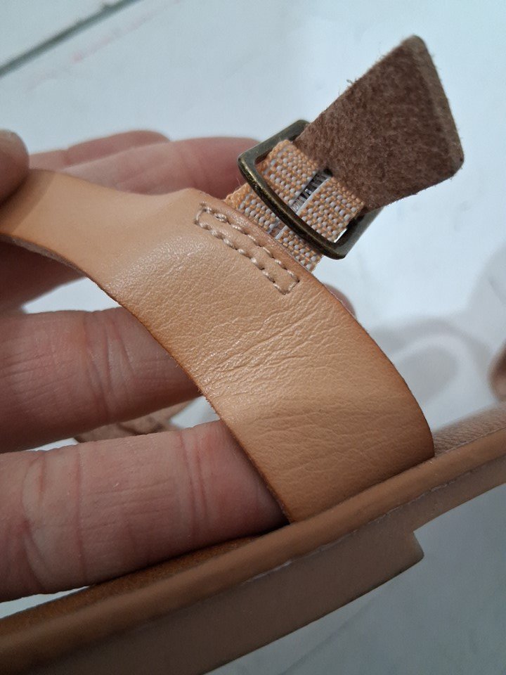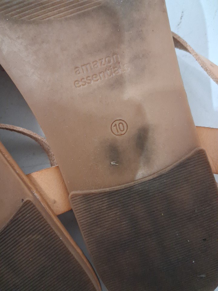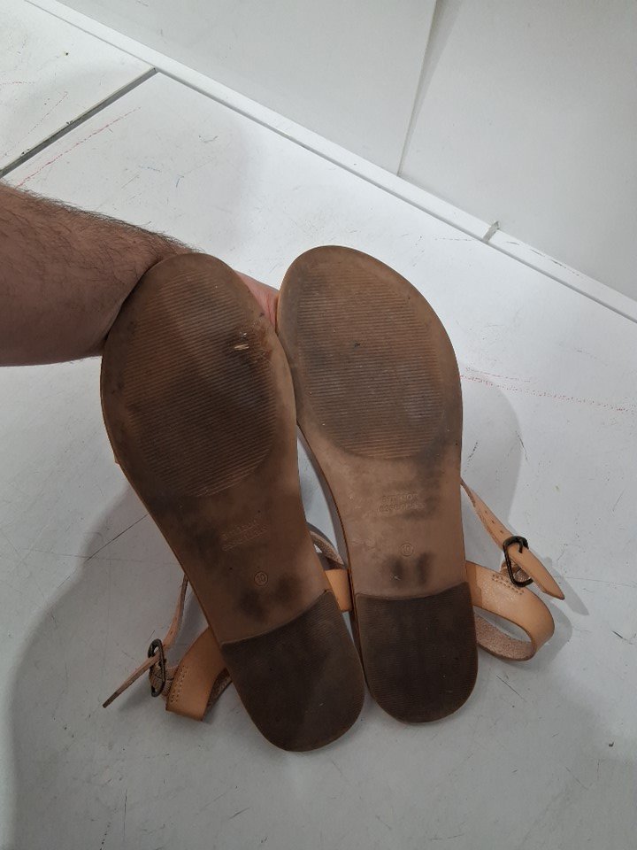 bottom of the shoes are dirty and there is some wrinkling of the straps please see photos