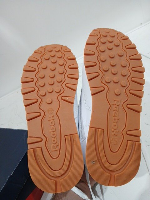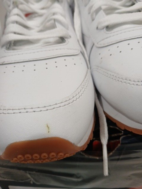 There is evidence of prior use inside of the shoe and some scuff marks on the outside.
