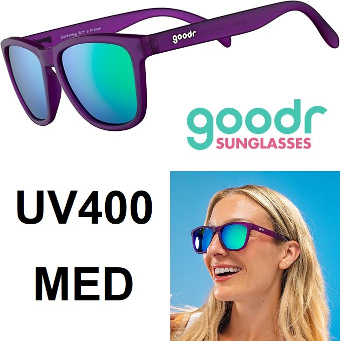 unisex goodr gardening with a kraken polarized sunglasses - medium sized (og) - uv400 - purple/mirrored green (Style: og-pr-pr1)