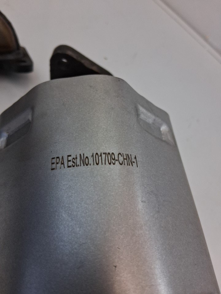 To best of knowledge, this is the make of catalytic converter - ASIN: B0FG7LB2SM FITS: FORD: 13-19 Explorer, Taurus, Flex, Police Interceptor Utility/Sedan 3.5/3.7L, 2015-2018 Edge 3.5/3.7L LINCOLN: 2013-2016 MKZ/MKS 3.7L, MKT 2013-2018 3.7L