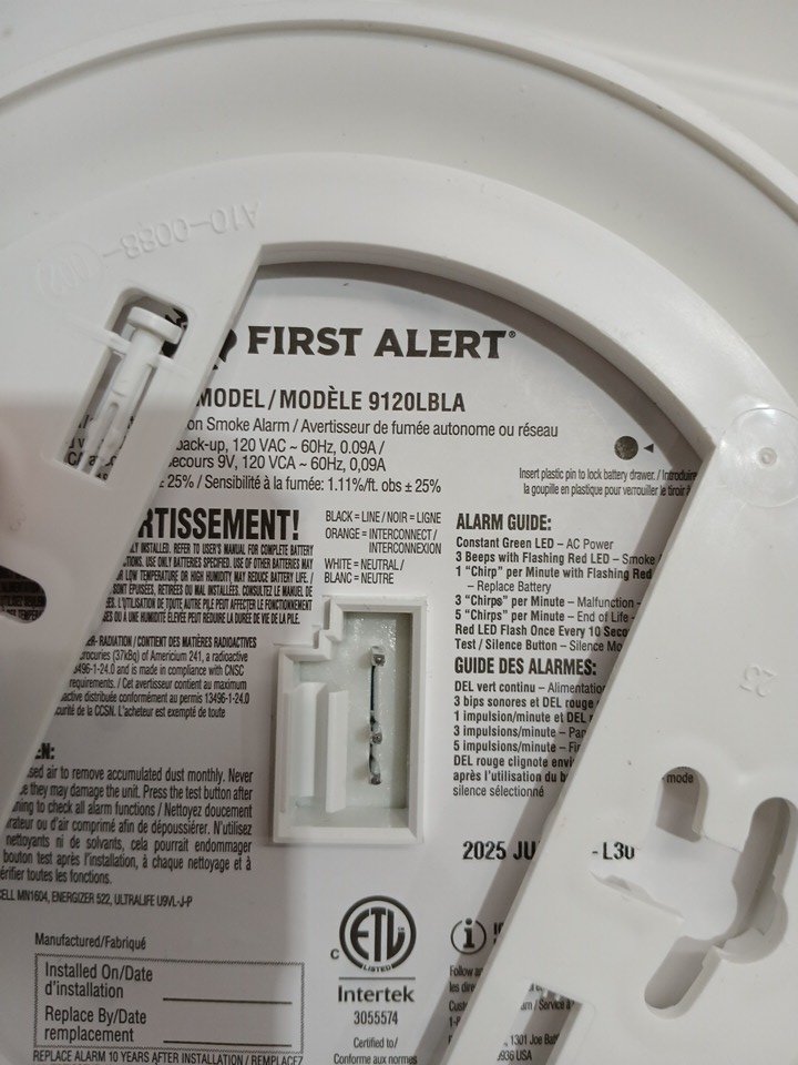 BRK AC Powered Smoke Alarm with 10 year battery backup - White (Model: 9120lbla)