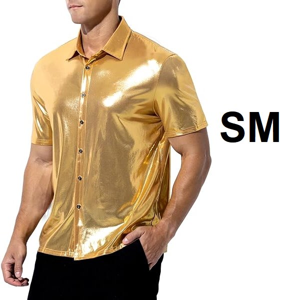 men's Casey Kevin Short Sleeve Collared Button Down Rave Outfit costume shirt - small - gold