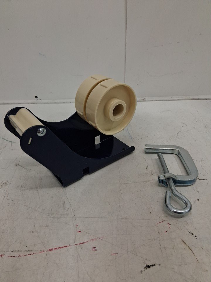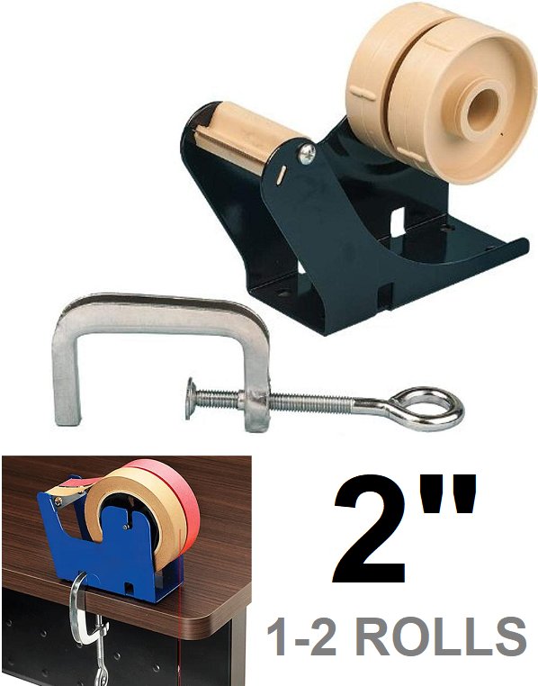 tach-it multi-rolls tape dispenser with c-clamp to mount anywhere - for one 2" roll or two 1" rolls - steel/plastic (model: B3-TC)