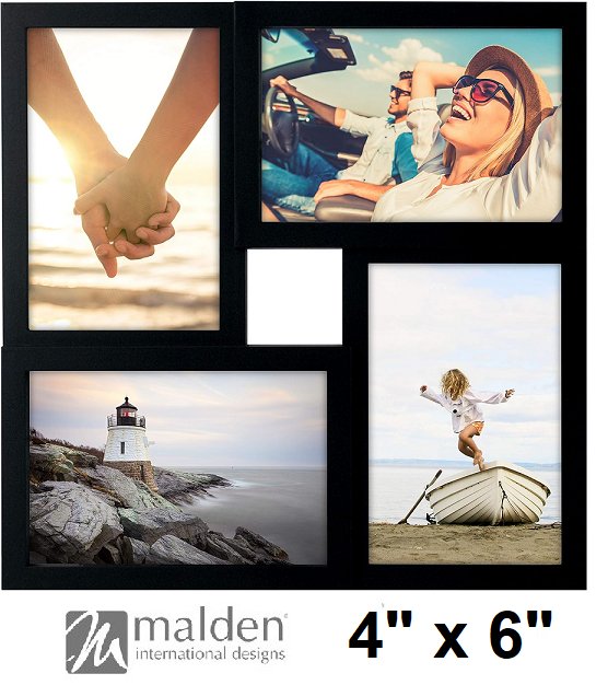 MALDEN 4-OPENING COLLAGE MATTED PICTURE FRAME - 4" X 6" - BLACK