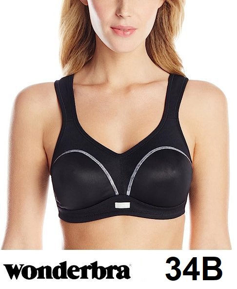 WOMEN'S WONDERBRA HIGH IMPACT, UNPADDED, WIRE-FREE SPORTS BRA - 34B - BLACK (STYLE:W5126)