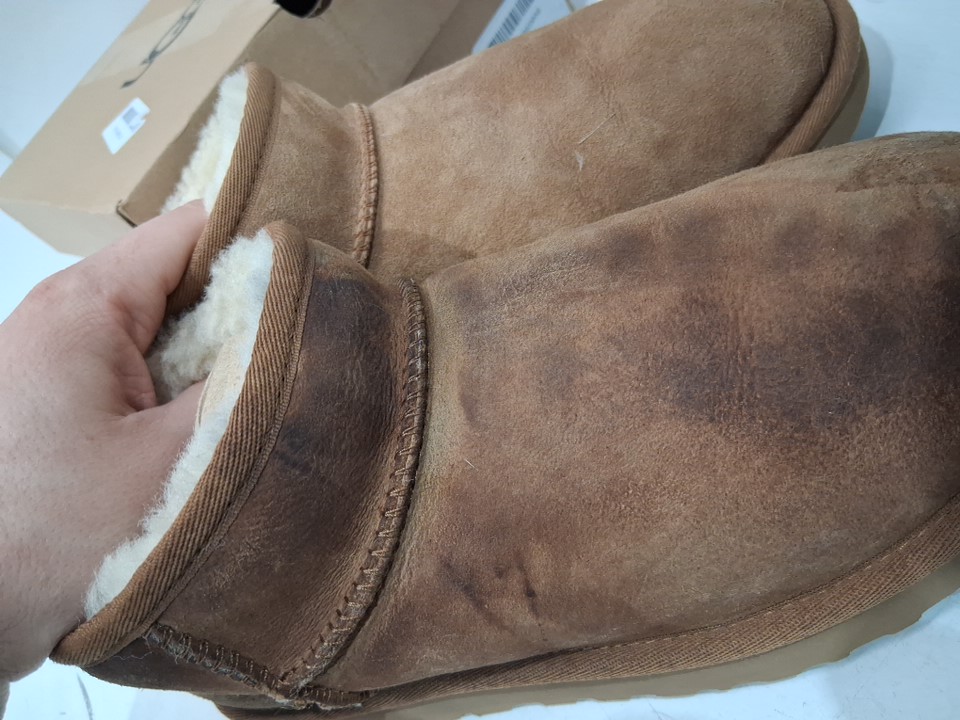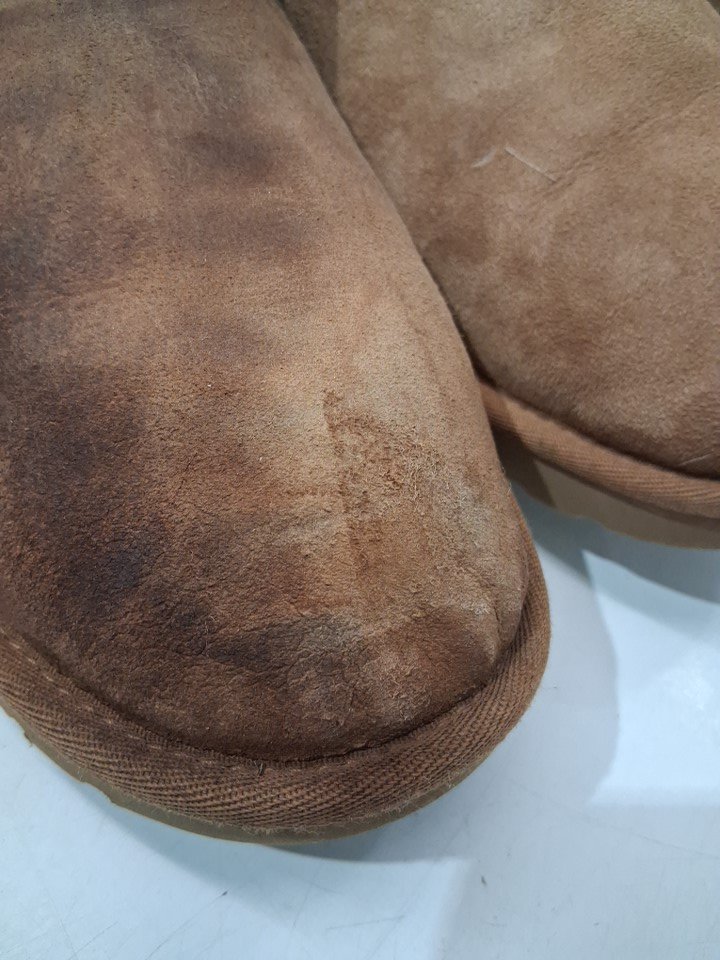 bottom of the shoes are dirty and it seems as though something has been spilled on one of the shoes changing the colour slightly and there is also some damage to the fabric near the toe on the same shoe please see photos