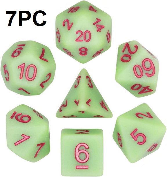7pc Handan DND Polyhedral Dice set - Frosted Green
