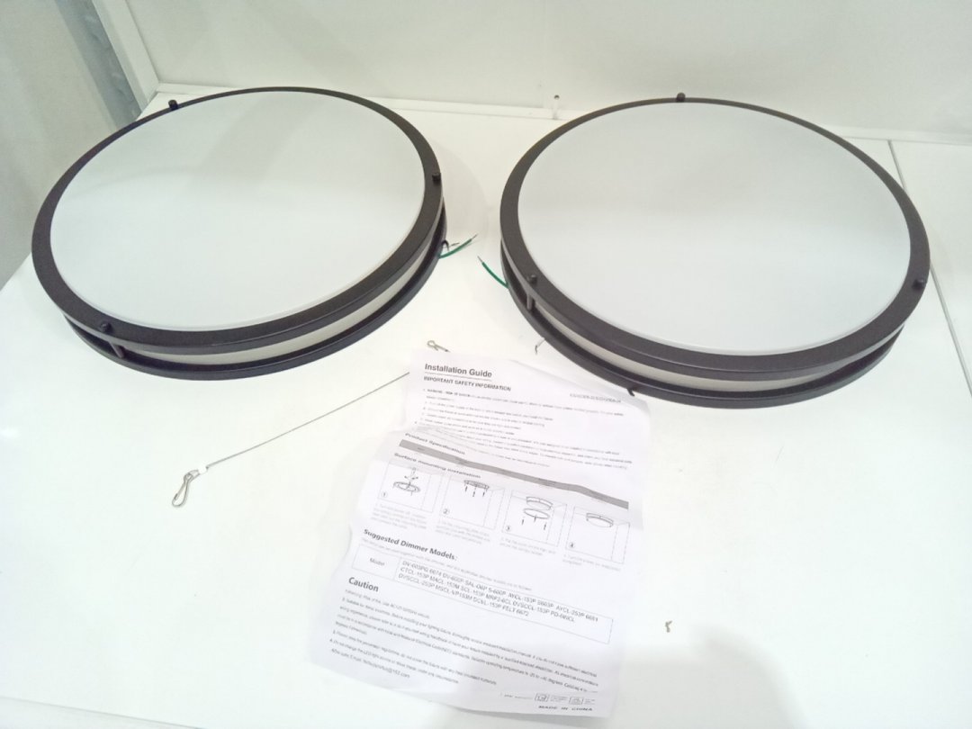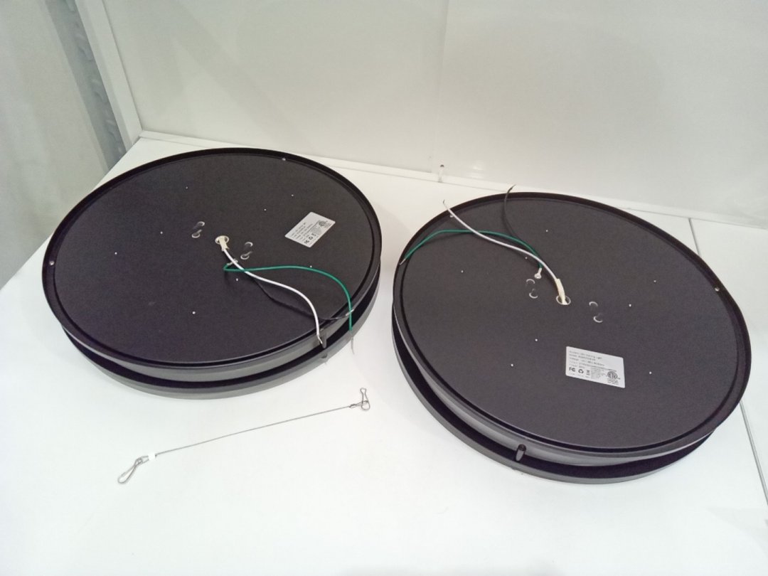 Item appears to be in new condition but has markings on wires from a previous installation attempt. Because of this, set is missing generic hardware (screws, etc.) and only comes with one hook. One of the fixtures has a screw missing where it attaches the top and bottom part. One fixture has Please see photos.
