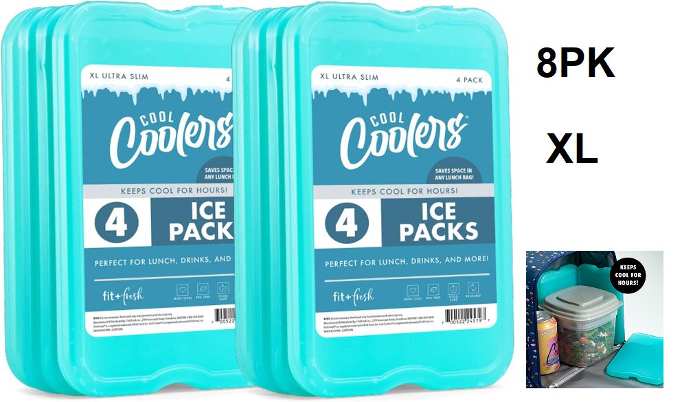 8pk Cool Coolers by Fit + Fresh Slim Ice Pack - extra large - blue