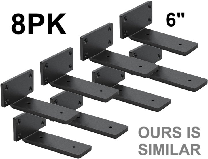 8PK Universal Heavy Duty Iron Floating Shelf Brackets with Screws Kit - 6" - Black