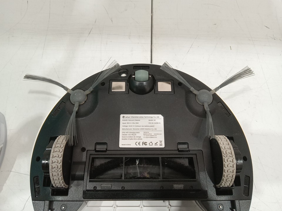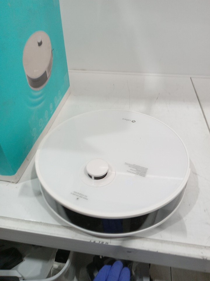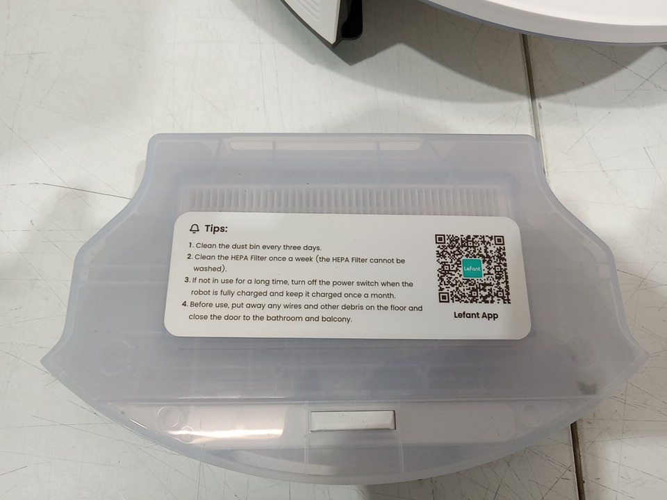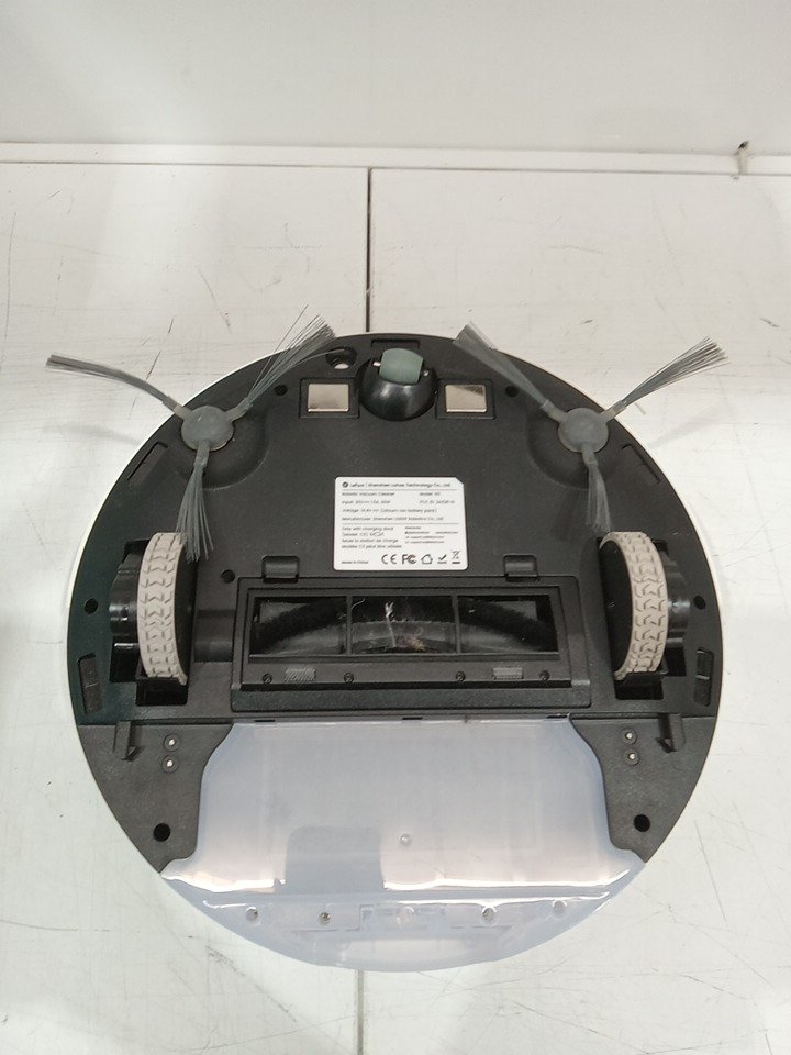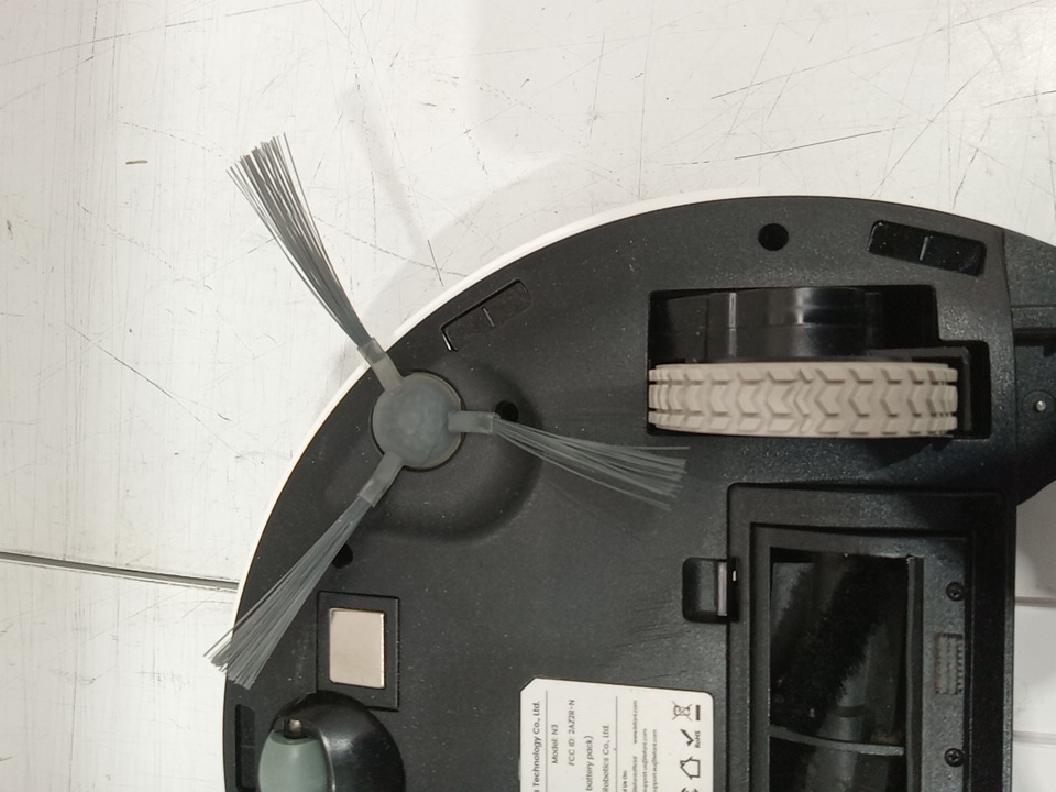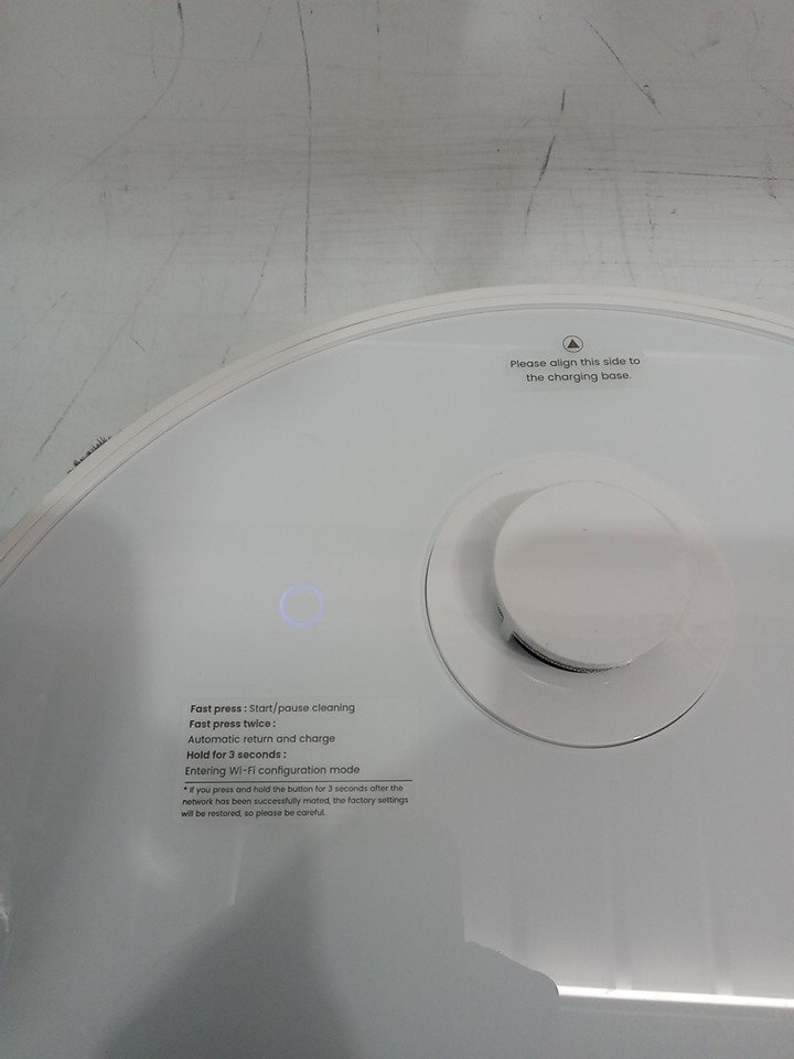 There are dust/dirt residue on the mop pad, filter, side brush from previous use. There are minor scratch marks on the sides and top from previous use. Tested for power, movement, suction and charging. (Please see photos)