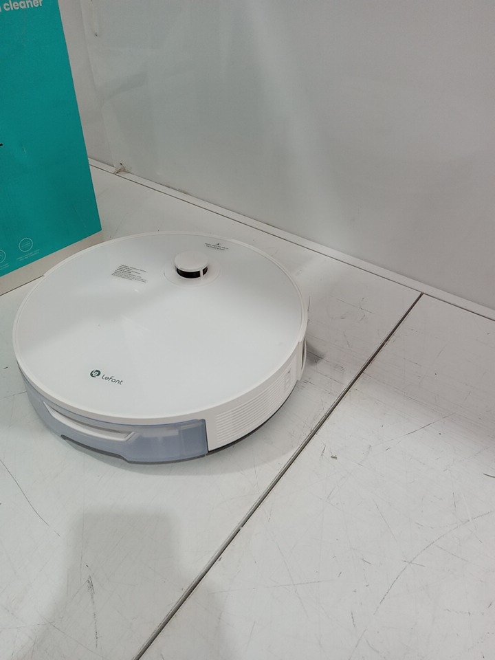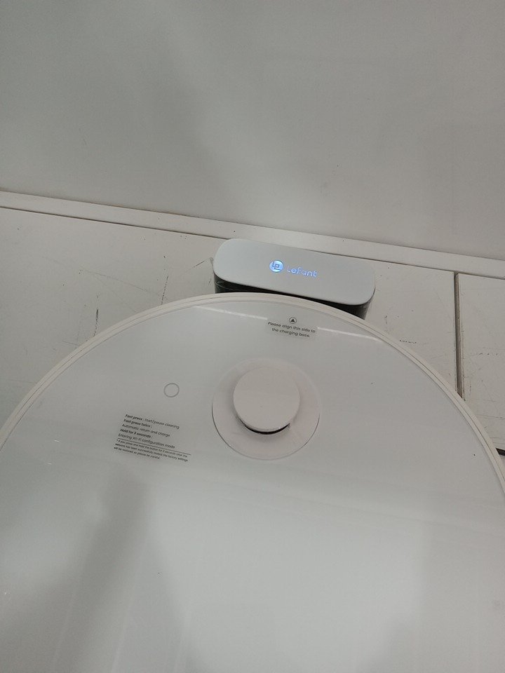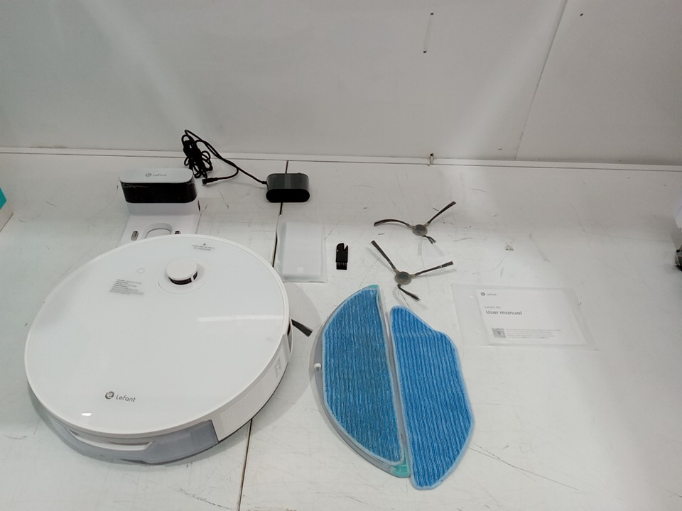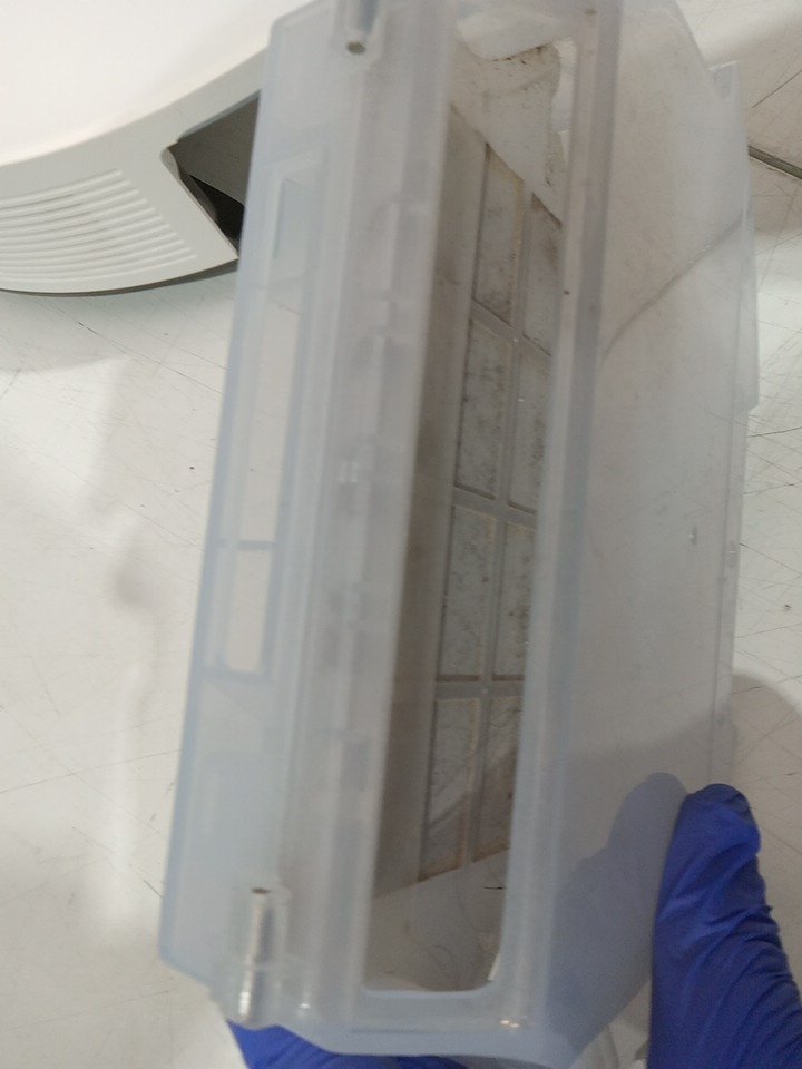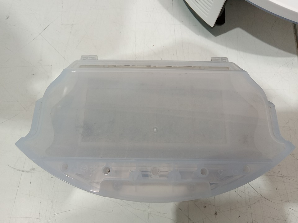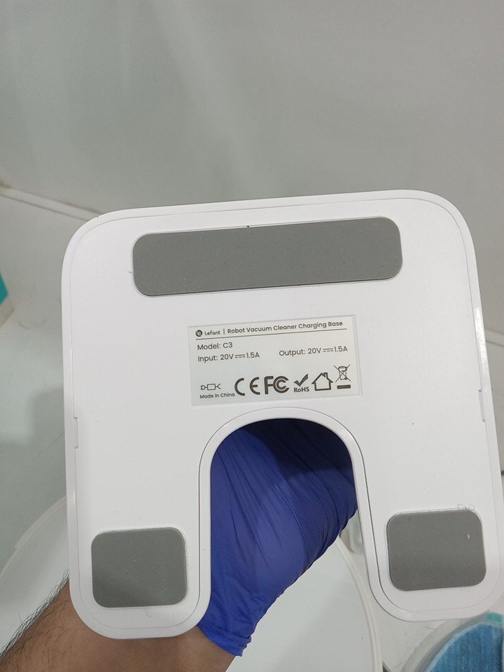 There are dust/dirt residue on the mop pad, filter, side brush from previous use. There are minor scratch marks on the sides and top from previous use. Tested for power, movement, suction and charging. (Please see photos)